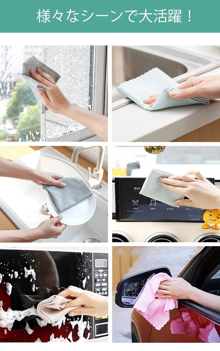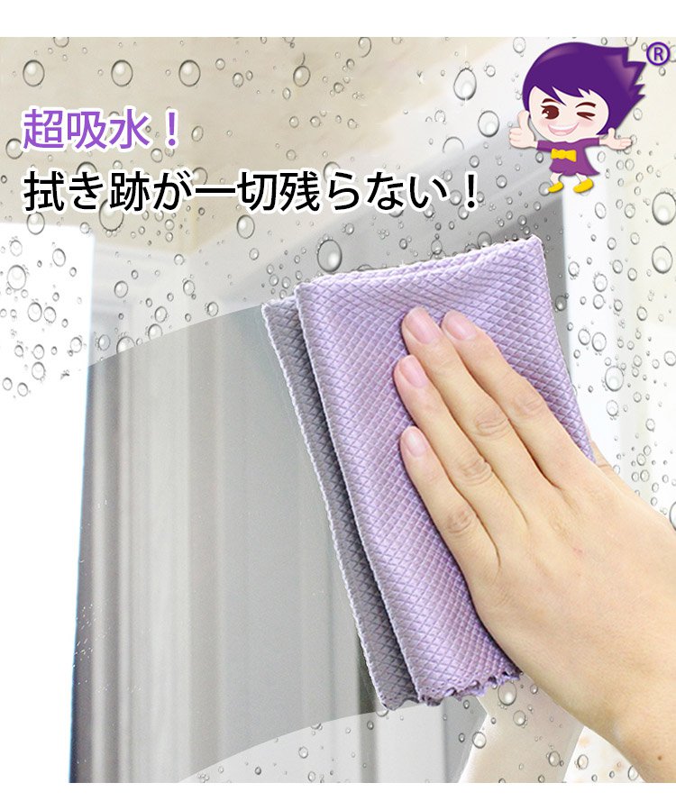 【マイクロファイバークロス】優れた吸水力を持って、毛羽落ちしなく、きれいに拭き取る!
