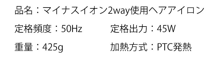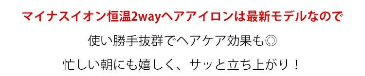 マイナスイオン2way使用ヘアアイロン、サラッと滑らすだけ、使用便利